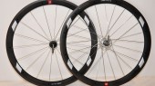 Abgesehen vom anders ausgeprägten Felgenhorn für Drahtreifen unterscheiden sich die Clincher-Laufräder nicht von den Tubulars. 18/24er Einspeichung an Vorder- und Hinterrad, verchromte Nabe mit Nabenflansch zum Verschrauben der Sapim CX Ray Aerospeichen und in die Felge integrierte Taschen für die Speichennippel.